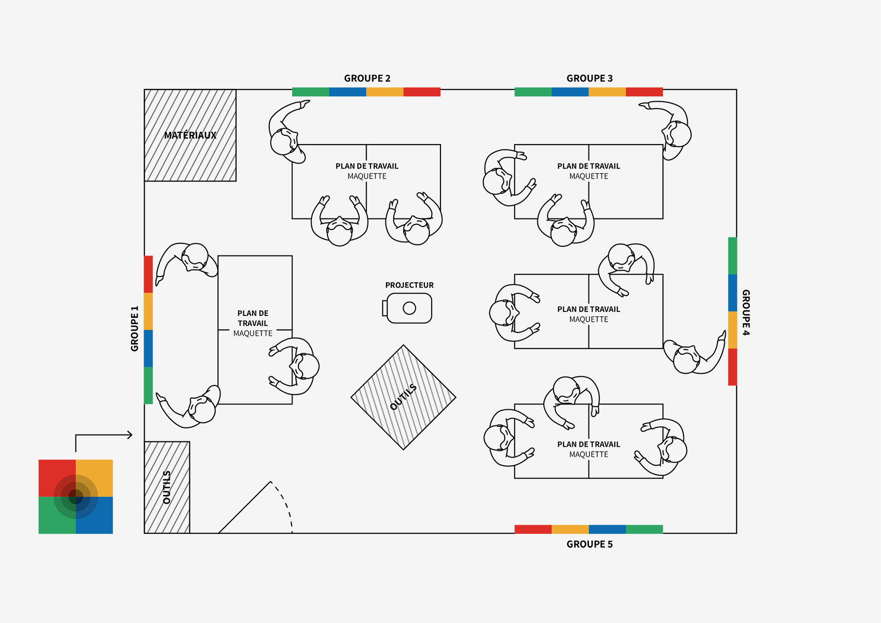 3. Notamment par l’utilisation des murs pour afficher, les outils de dessin et de prototypage rapide, l’utilisation libre de la salle, etc ↩